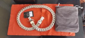 This weave is author's and is made by means of the so-called casting. Casting allows you to depict a variety of designs and patterns on products; in this case, the links of the chain depict: “Maltese cross, Mother of God, Guardian Angel.”